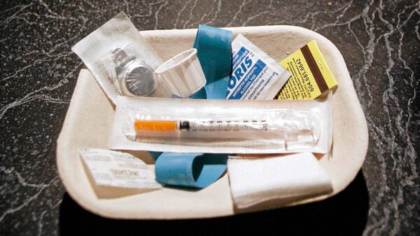 A small kit of supplies including syringes, bandaids and antiseptic pads waits to be used by a drug addict inside a safe injection site on Vancouver, British Columbia's eastside August 23, 2006.Andy Clark/ Reuters