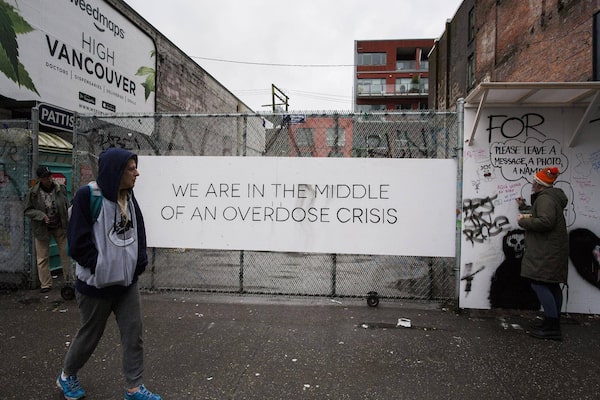 A memorial wall dedicated to overdose victims in Vancouver's Downtown on April 10, 2017.Rafal Gerszak/The Globe and Mail