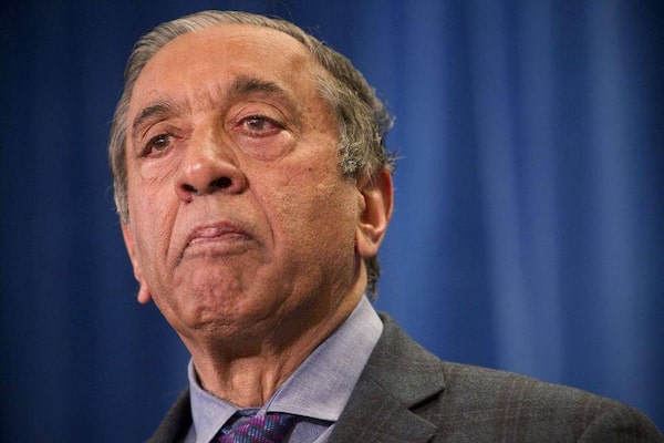 Missing Women Inquiry Commissioner Wally Oppal pauses while delivering remarks on the inquiry shortly after it was made public in Vancouver, December 17, 2012.BEN NELMS/Reuters
