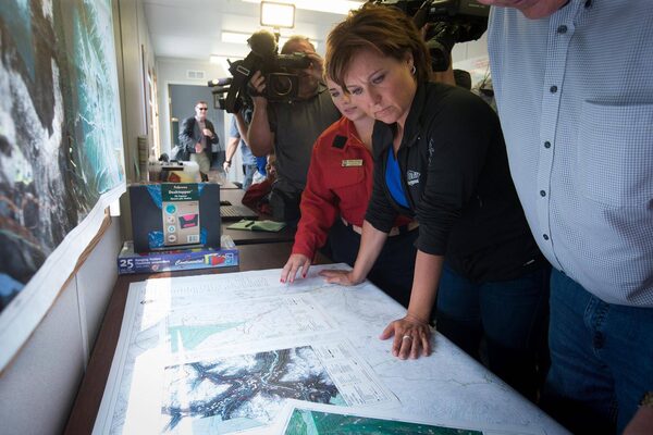 B.C. Premier Christy Clark looks at maps of wildfire firefighting operations during a visit to the Pemberton Fire Base in Pemberton, B.C.DARRYL DYCK/The Canadian Press