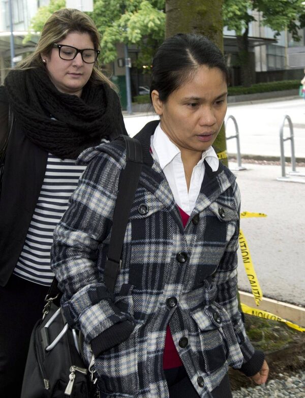 Live-in caregiver Leticia Sarmiento arrives at B.C. Supreme Court in Vancouver on May 30, 2013.Jonathan Hayward/The Canadian Press