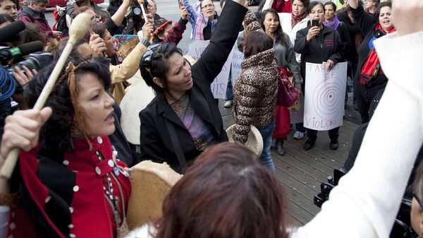 Women sing and chant outside of the missing women inquiry in downtown Vancouver, Tuesday, Oct. 11, 2011.Jonathan Hayward/The Globe and Mail