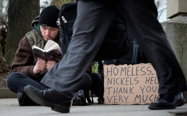 A man walks past 35-year-old Shawn Cossaboom, who has received more than 70 bylaw infraction tickets from Vancouver police.DARRYL DYCK/The Globe and Mail