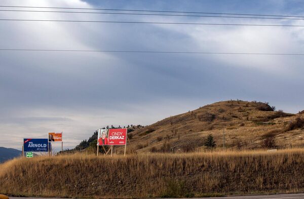 Federal Elections signs along Highway 97 South through Vernon, B.C. in the North Okanagan, one of 42 federal ridings in which British Columbians will elect Members of Parliament on Oct. 19.Jeff Bassett