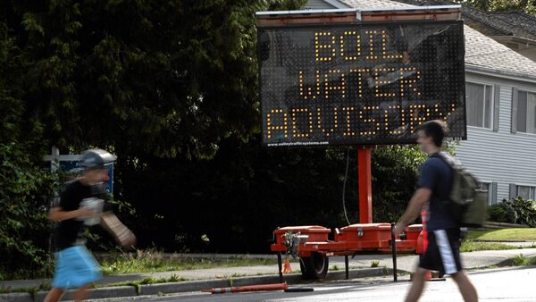 Pedestrians pass a sign advising of a boil water advisory in White Rock, B.C., on Monday August 23, 2010. Residents of have been told to boil their water after E. Colin bacteria was detected in the city's water supply.DARRYL DYCK