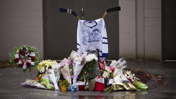 A memorial for Julie Paskall, who was fatally beaten, has been set up outside the Newton community arena in Surrey.BEN NELMS/The Globe and Mail