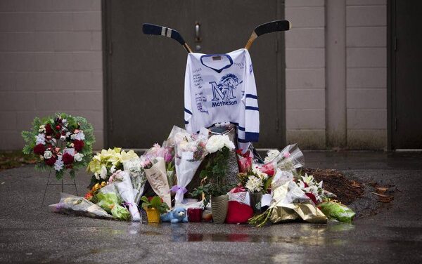 A memorial for Julie Paskall, a Surrey woman who was fatally beaten on Sunday night, outside the Newton Arena in Surrey, British Columbia on January 2, 2013.