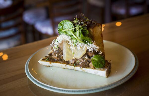 The best dish on the menu is definitely Bones, Tongues and Harmony, a huge slab of melting beef marrow piled high with tender beef tongue, sweet beets and horseradish.Ben Nelms/The Globe and Mail