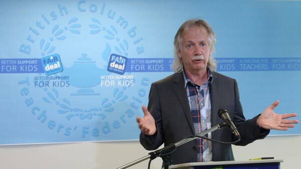 B.C. Teachers' Federation President Jim Iker addresses members of the media in Vancouver, Tuesday, Sept.16, 2014. Iker said the ruling was a victory for all working women who are pregnant or may become pregnant in the future, not just teachers.JONATHAN HAYWARD/The Canadian Press