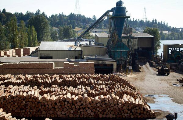 Logs to be processed are pictured at Interfor's Acorn Division mill in Delta, B.C., on Friday September 14, 2012.Darryl Dyck/The Globe and Mail