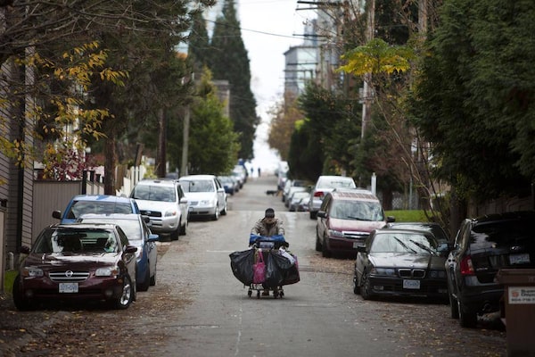 A homeless man walks through a back lane in the West End neighbourhood in Vancouver, British Columbia, Saturday, November 16, 2013.Rafal Gerszak/The Globe and Mail