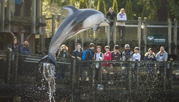 A Pacific white-sided dolphin flips through the air during a show at the Vancouver Aquarium in March, 2015.John Lehmann/The Globe and Mail