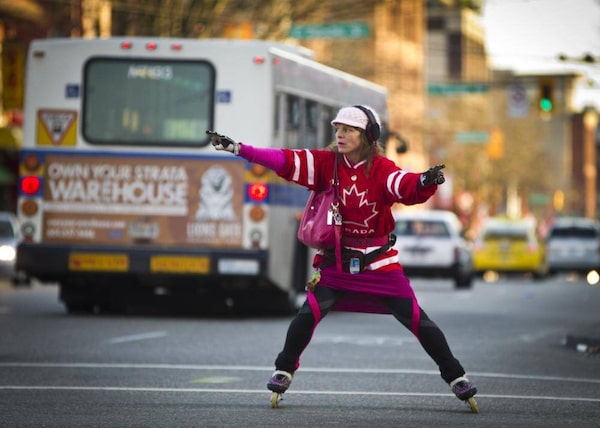 Dawson filed the complaint after several run-ins with police in Vancouver, where she is known as "Rollergirl," as she likes to direct traffic while wearing Rollerblades.