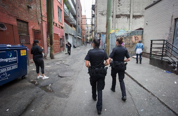 Vancouver Police officers work in the Downtown Eastside of Vancouver on July 11, 2016.DARRYL DYCK/The Globe and Mail