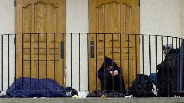 Homeless people sleep on a building's steps in the Victoria, July 2007.Diana Nethercott For The Globe and Mail