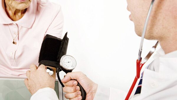Doctor checking elderly person's blood pressure.iStockphoto/Getty Images/iStockphoto