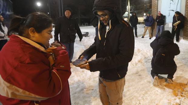 Tony Niiganii, coordinator for the North End Youth Council and facilitator for the North End Youth Skills Development Strategy in Winnipeg, hands out cookies baked by youth in his program.