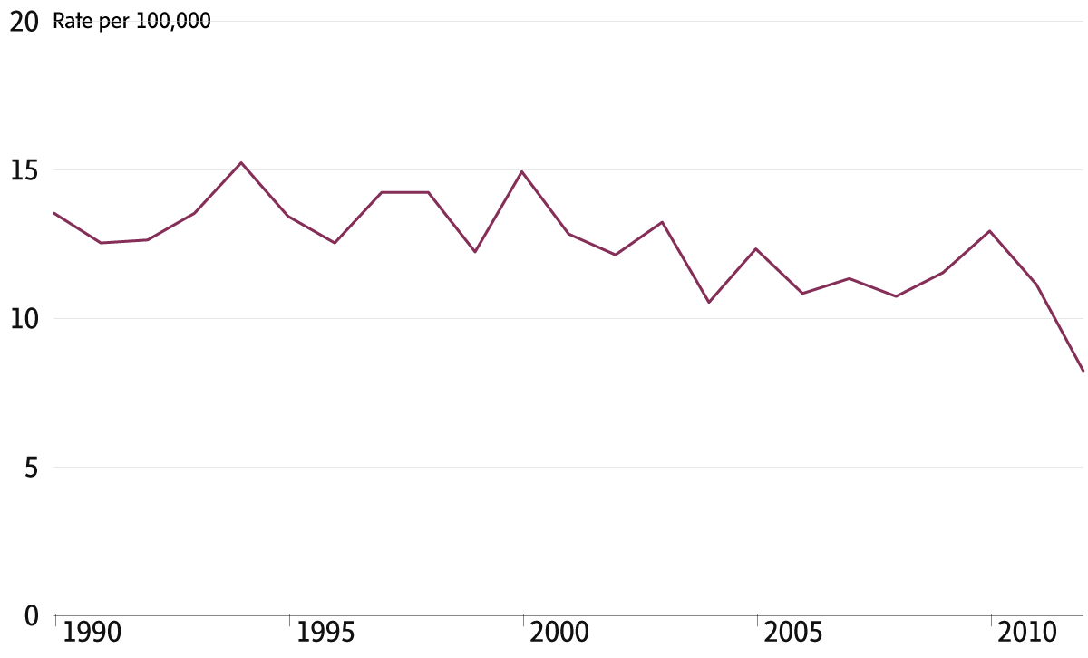To arrive at a fatality rate, we asked Statistics Canada to replicate what the agency had done in its 1996 paper: match worker death counts with average head-count levels for each job, over the same time period, to arrive at a rate per 100,000 paid workers.
