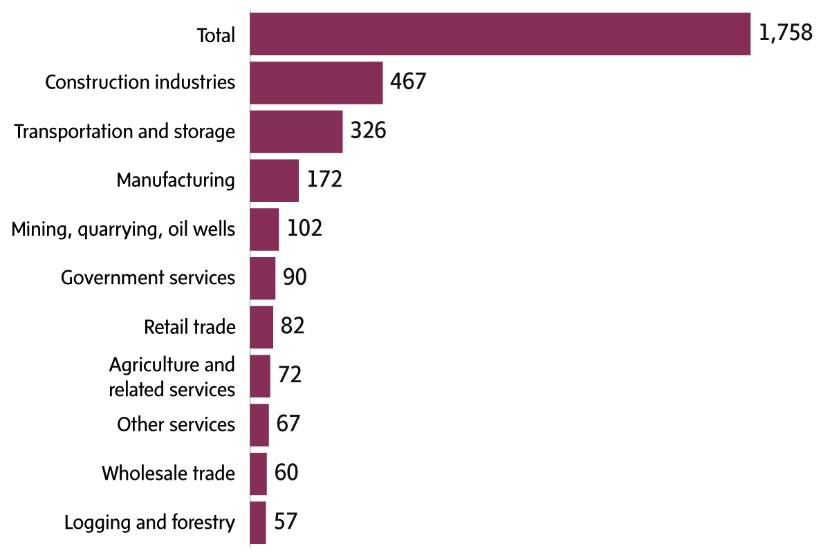 Note: Excludes fatalities that were “Not coded” by occupation. THE GLOBE AND MAIL » SOURCE: AWCBC
