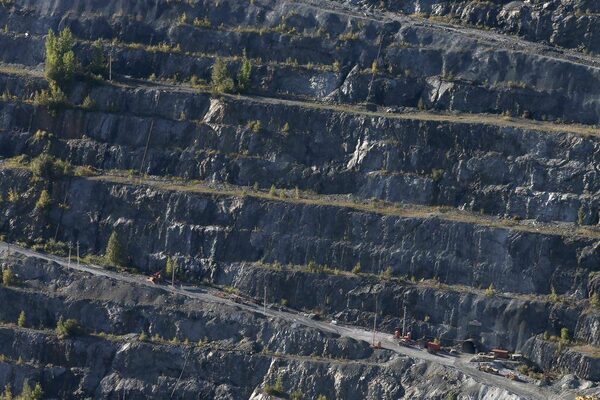 The road leading into the Jeffrey Mine in the town of Asbestos, Que. The massive open pit in the heart of the community is deep enough to swallow the Eiffel TowerChristinne Muschi/The Globe and Mail