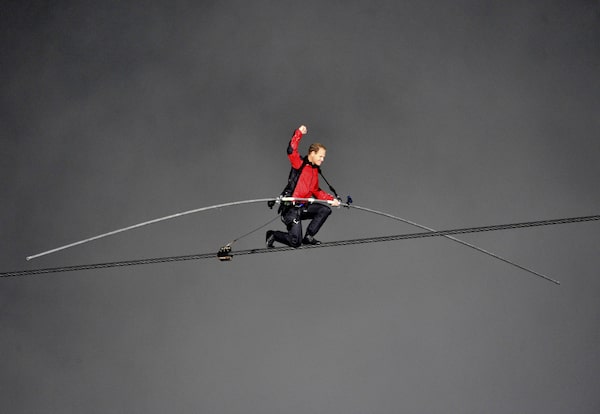 Prayers weren't necessary, according to retired roofer Bruce Gregory of nearby Wellandport, Ont. He's been hanging around most of the week and saw the satellite trucks arrive to set up the wire on Tuesday. He watched the Wallendas as a kid on television, and he stood in line to meet Mr. Wallenda on Thursday. They ended up chatting for 10 minutes because they are both professionals when it comes to keeping their balance at high altitudes and they had experiences to share.