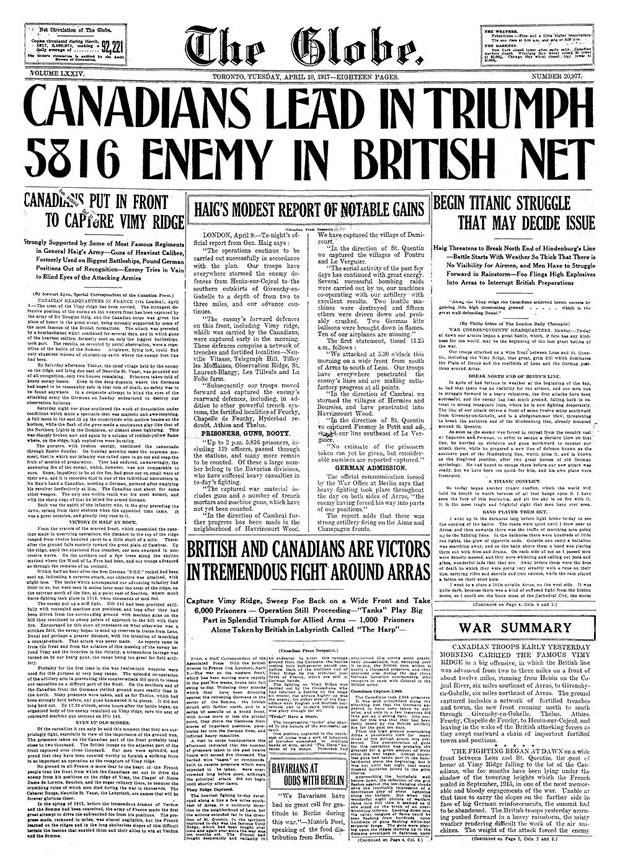 "Canadians Lead in Triumph," said The Globe's front page, which assigned the victory to overall British commander Douglas Haig. The Globe didn't mention the birth of a nation: It had already seen that at the Second Battle of Ypres in 1915, where "Canada was christened into nationhood." Max Aitken (later Lord Beaverbrook) recycled that characterization of Ypres in his 1916 bestseller, Canada in Flanders.