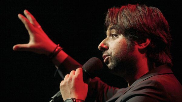 Jian Ghomeshi speaks to a Los Angeles crowd before a live broadcast of his radio show 'Q' at The Broad Stage in Santa Monica, Oct. 16 2014.Barbara Davidson/The Globe and Mail