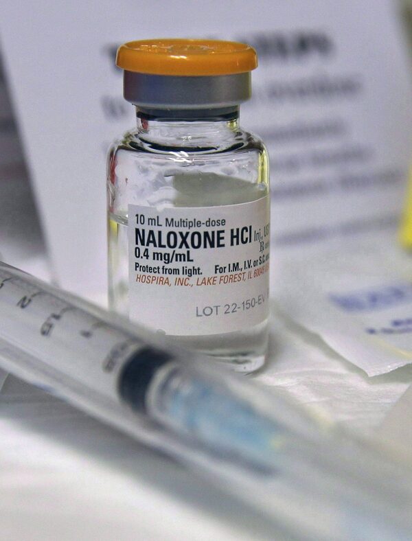 A small bottle of the opiate overdose treatment drug naloxone is seen in Atlantic City, N.J., on Feb. 19, 2014.Mel Evans/The Associated Press