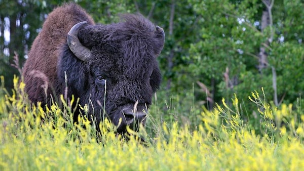 A Bison relaxes in a field near Elk Island National Park east of Edmonton on Sunday afternoon July 13, 2008.Jason Franson/The Canadian Press