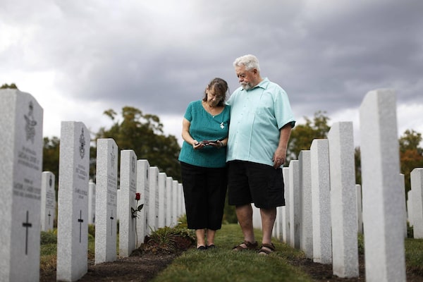 Phillip and Micheline Reed, who lost their son Corporal Tony Reed to suicide in 2012, stand among the graves of Beechwood Cemetery in Ottawa on Oct. 5, 2017.Blair Gable/The Globe and Mail