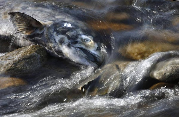 A chinook salmon lies dead in the fast flowing waters of the Adams River near Chase, B.C.Andy Clark/Reuters