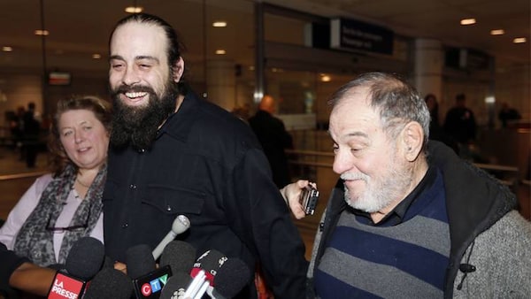 Canadian Greenpeace activist Alexandre Paul, centre, smiles as he meets the media with his parents after arriving at Montreal's airport on Dec. 27, 2013. Mr. Paul spent about two months in prison after being arrested during a protest outside a Russian oil rig in the Arctic.Christinne Muschi/Reuters