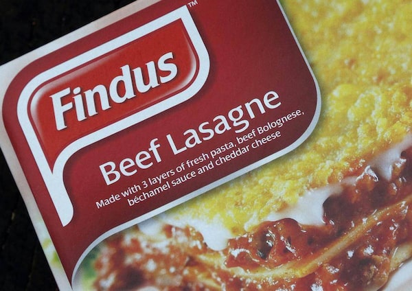 A 320g size box of Findus brand beef lasagne is seen after its purchase from an independent food store in Nunhead, southeast London February 8, 2013. Food manufacturer Findus confirmed on February 7 that results of tests carried out by Britain's Food Standards Agency that showed that the company's beef lasagne contained horse meat.CHRIS HELGREN/Reuters
