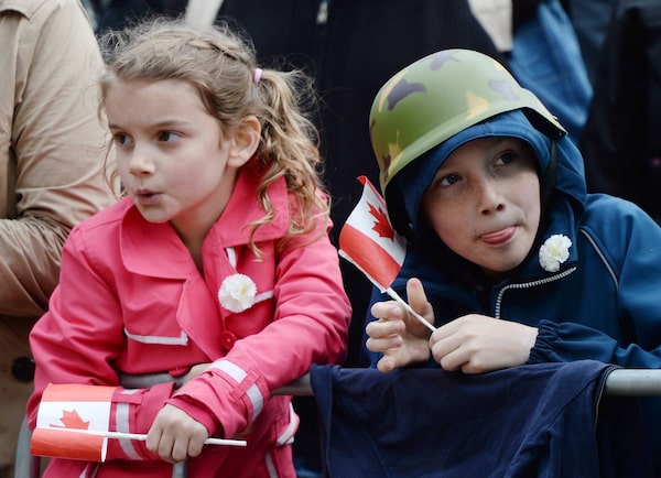 Young Dutch children hold Canadian flags as they wait for a parade to celebrate the 70th anniversary of the liberation of Holland in Wageningen, Netherlands.Sean Kilpatrick/The Canadian Press