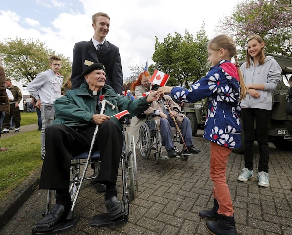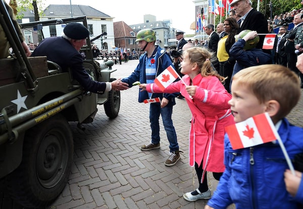 Young Dutch children wave Canadian flags as they reach out to touch the hand of a Second World Wat veteran as he takes part in a parade to celebrate the 70th anniversary of the liberation of Holland in Wageningen, Netherlands.Sean Kilpatrick/The Canadian Press