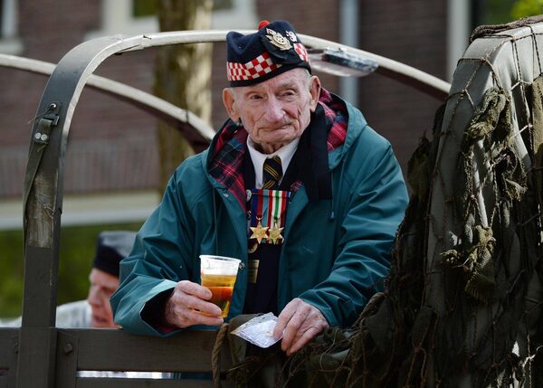 A Canadian Second World War veteran enjoys a beer as he takes part in a parade to celebrate the 70th anniversary of the liberation of Holland in Wageningen, Netherlands.Sean Kilpatrick/The Canadian Press