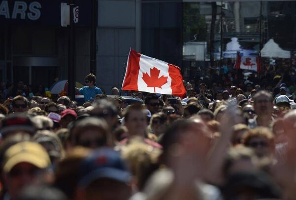 A Canadian flag is backlit in the afternoon sun during an outdoor concert at Dundas Square in Toronto on May 20, 2013.Fred Lum/The Globe and Mail