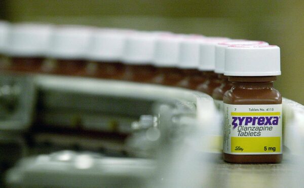 Bottles filled with the drug Zyprexa sits on the packaging line at the Eli Lilly & Co. Dry Products Packaging Facility in Indianapolis, Thursday, April 10, 2003. A new study is placing more scrutiny on why these drugs are used so routinely.DARRON CUMMINGS/The Associated Press