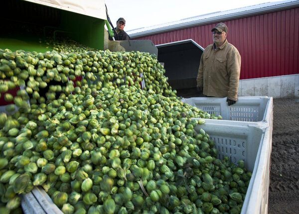 Bill French, right, and his son Brian harvest brussel sprouts on their farm in Melancthon township near Orangeville, Ont., on Nov. 21, 2012. Mr. French was one of many area farmers opposed to a massive limestone quarry that was proposed for the area.Kevin Van Paassen/The Globe and Mail