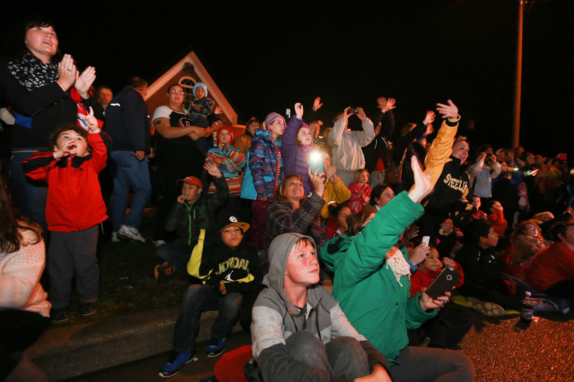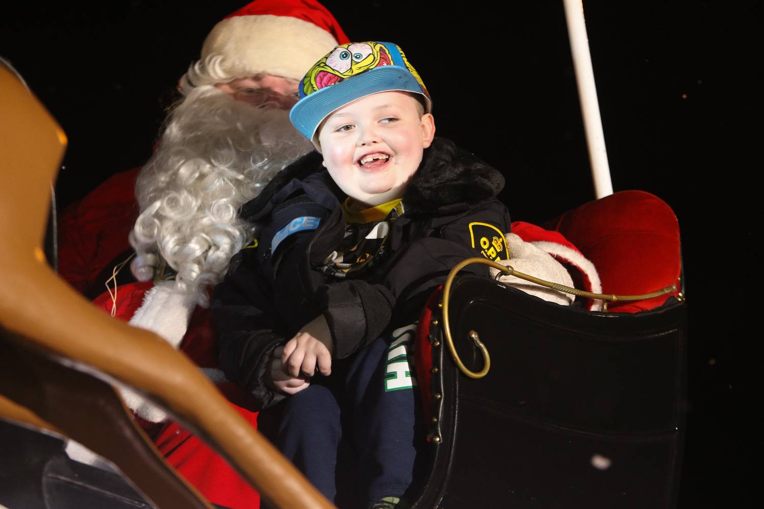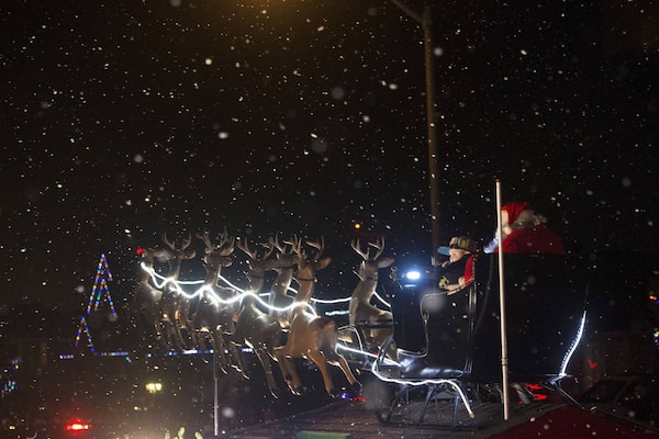 Evan Leversage rides in sleigh at the Christmas Parade.Chris Young/The Canadian Press