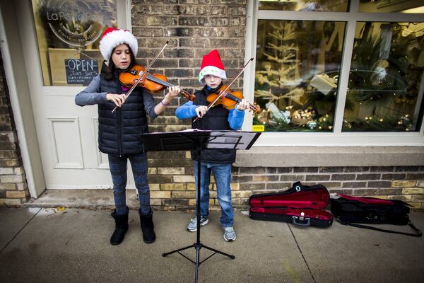 Brooke and Cameron Rigby play Christmas music on the street in honour of Evan Leversage.Mark Blinch/Reuters