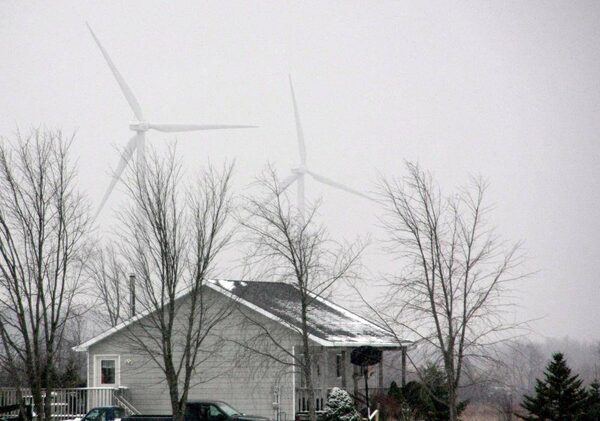 Wind turbines are seen near a home in Melancthon Township, Ont., on Sunday, Nov. 16, 2014. Four rural families who lost their fight against the construction of wind farms near their homes will have to pay a total of $67,000 to the companies they took to court.Colin Perkel/The Canadian Press