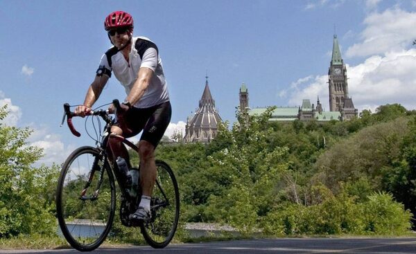 A cyclist rides with a helmet near Parliament Hill on July 8, 2010. Provincial governments should force anyone riding a bicycle to wear a helmet, says the co-author of a new report that found helmet use varies greatly across Canada.Adrian Wyld/The Canadian Press