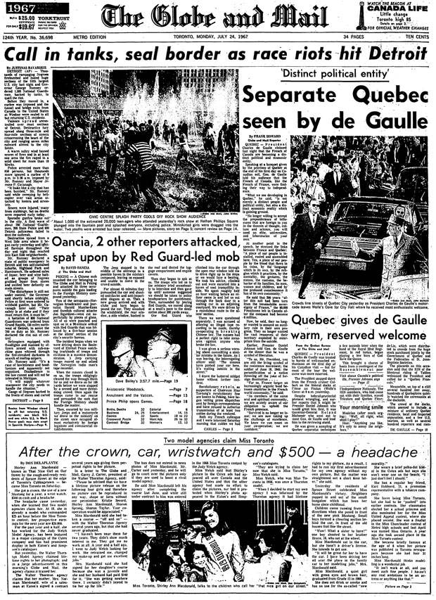 CANADA IN 1967: MORE FROM THE GLOBE AND MAIL