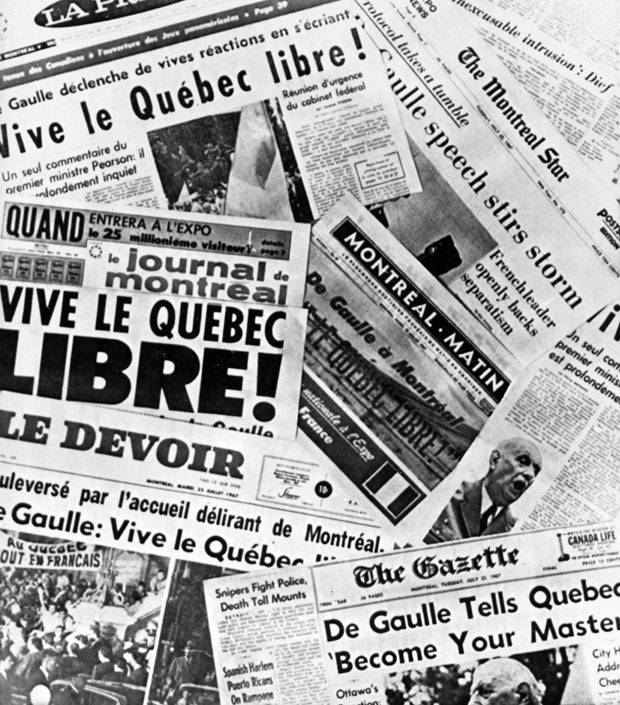 Federalist condemnation was swift and severe, though it took prime minister Lester Pearson's cabinet nearly a day to muster an official response. Gen. de Gaulle's words were "unacceptable," Mr. Pearson said in a national broadcast. "Canadians do not need to be liberated. Indeed, many thousands of Canadians gave their lives in two world wars in the liberation of France and other European countries. Canada remains united."