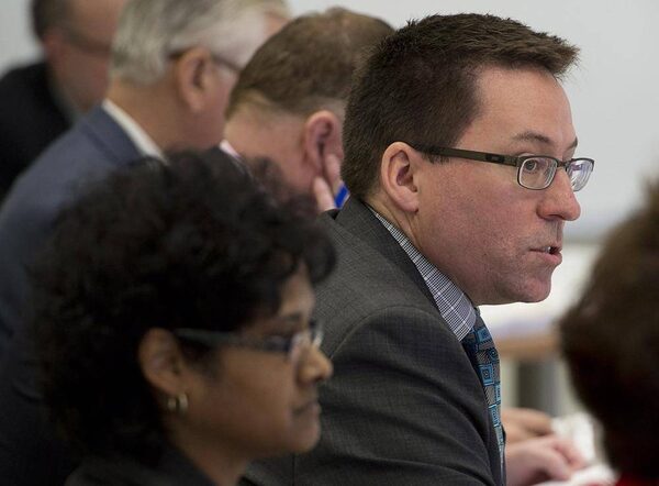 Rene Gallant, president of the Nova Scotia Barristers' Society, along with executive committee members, listens to presentations regarding Trinity Western University's proposed law school in Halifax on Thursday February 13, 2014.Andrew Vaughan/The Canadian Press