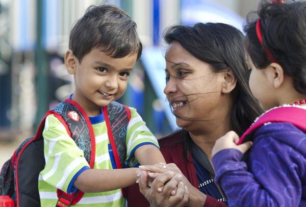 Four-year-old Zain Siddiqui and his mother Tabassum arrive at his first day of school at Fraser Mustard Early Learning Academy in Toronto Tuesday, Sept. 3, 2013.Kevin Van Paassen/The Globe and Mail