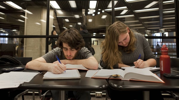 University of Toronto students Paul Nirenberg and Tanya Brekelmans study in Robarts Library on Feb. 15, 2012.