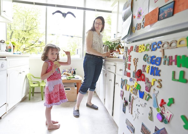 University of British Columbia professor Jennifer Klenz prepares lunch for her five-year-old daughter, Maddy, in their Point Grey apartment on May 19. Dr. Klenz says she is uncertain she will ever be able to buy a house in Vancouver, despite being a permanent faculty member.Jeff Vinnick/The Globe and Mail