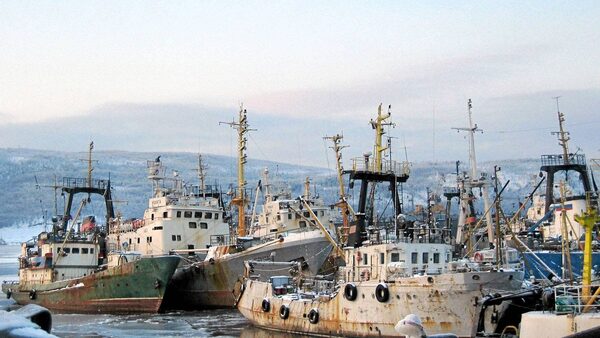 A picture taken 21 February 2006 shows trawlers from the Murmansk fleet in the port, waiting the next fishing expedition.Dario Thuburn/AFP/Getty Images